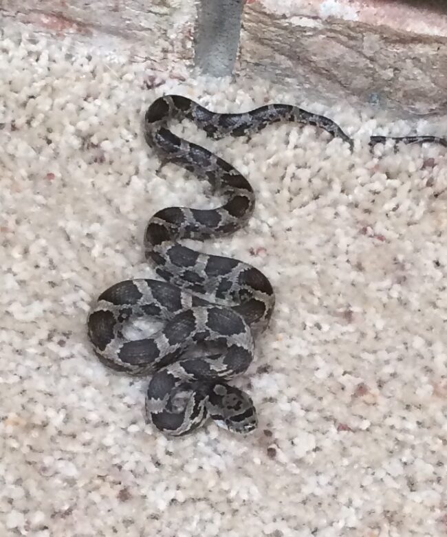 Black Rat Snake By Holly Jo Linzay Slithering along the brick wall, the long black snake climbs up higher and higher. Michael Beran, owner and CEO of Wildlife Command Center, drives up to the house in his work truck responding to the service call. “He’s climbing on the side of the chimney. Classic rat snake…
